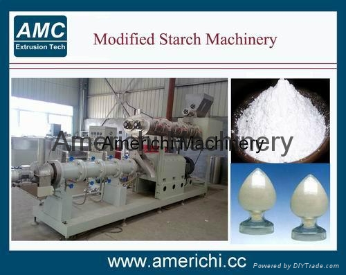 原淀粉经过某种方法处理后,不同程度地改变其原来的物理或化学特性。变性淀粉是一种经过改性过的淀粉。此种淀粉具有一些特殊的理化性能,添加到食品配方中后可以使食品在加工或食用时具有更好的性能。该设备经由专业设计,调节了机腔和螺杆结构,使变性淀粉的功能实现了多元化,生产出的变性淀粉系列产品适用于纺织、食品、造纸、建材、铸造、石油钻井等领域,随着研究的深入,挤压机在变性淀粉市场领域中将会发挥越来越大的作用。该机由供料系统、挤压系统、旋切系统、加热系统、传动系统、冷却系统组成。