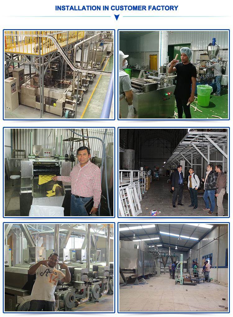 d. such double screw extruder can also produce other products, like leisure snacks, breakfast cereal, nutritional rice and powder, bread crumb, crispy rice chip, etc.