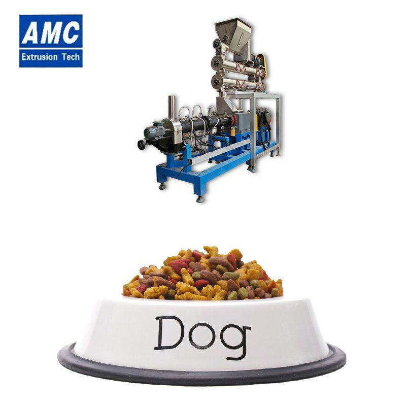 Pet food machine uses foodstuff, meat powder, fishmeal, and beans etc. as raw materials to produce pet food and fish and bird feed with new shape, unique taste, rich nutrition and exquisite structure. The products are cooked and sterilized with high degree and high pressure of the extruder, so it is easy to be absorbed and popular to the pet market.