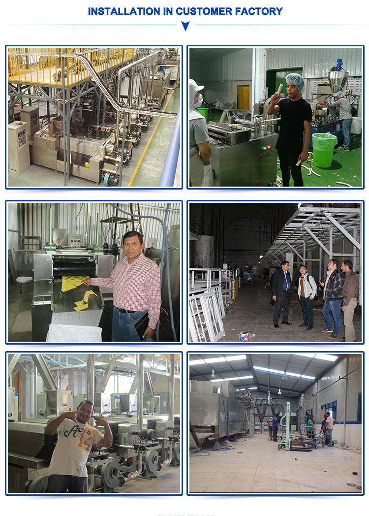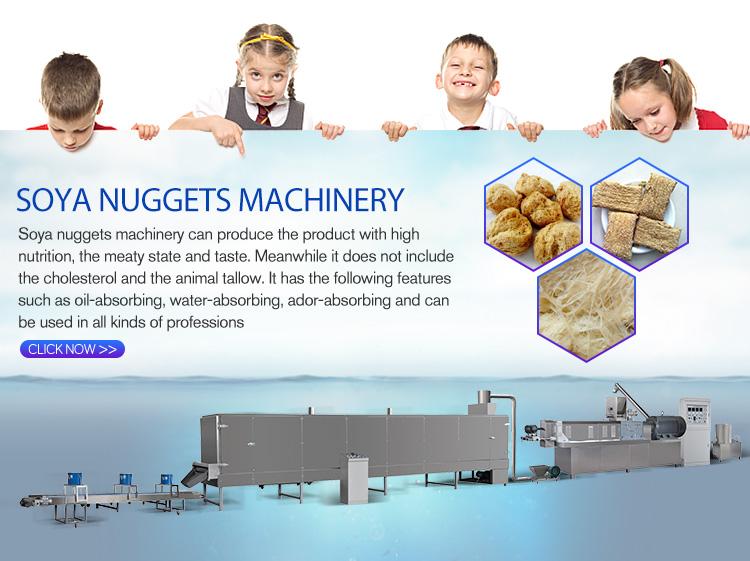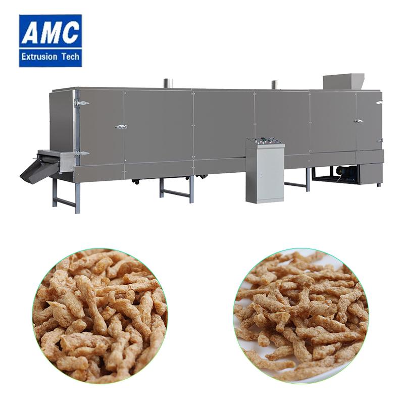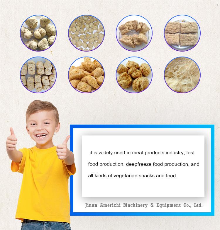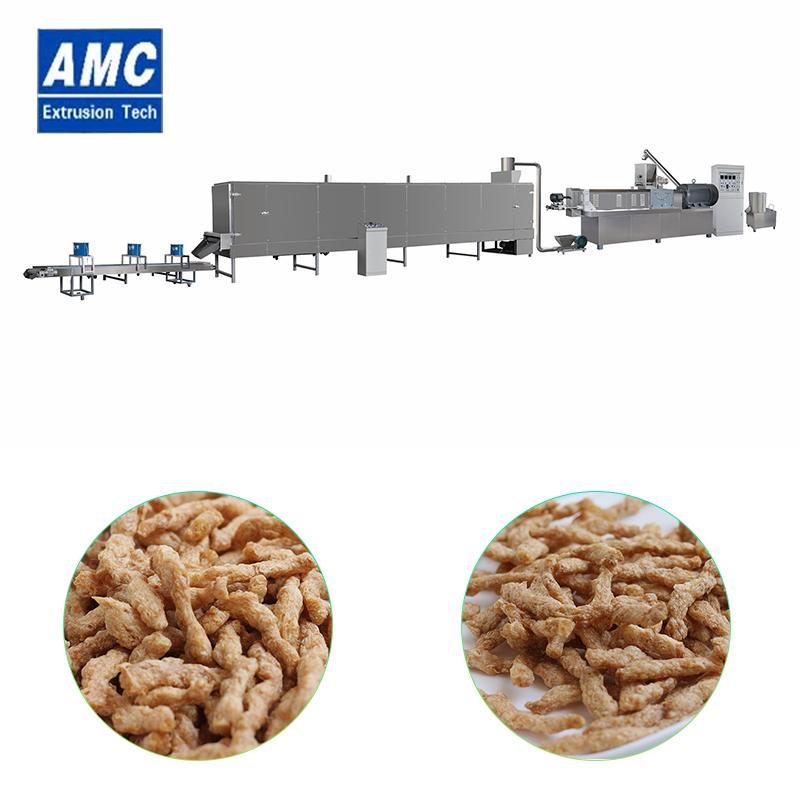 1. Soya protein food processing line uses defatted soybean powder and peanut powder to break spherical protein molecule to form chain protein molecule .