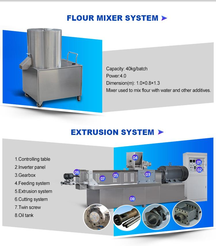 4.The complete line includes Mixer, extruder, dryer and flavoring line